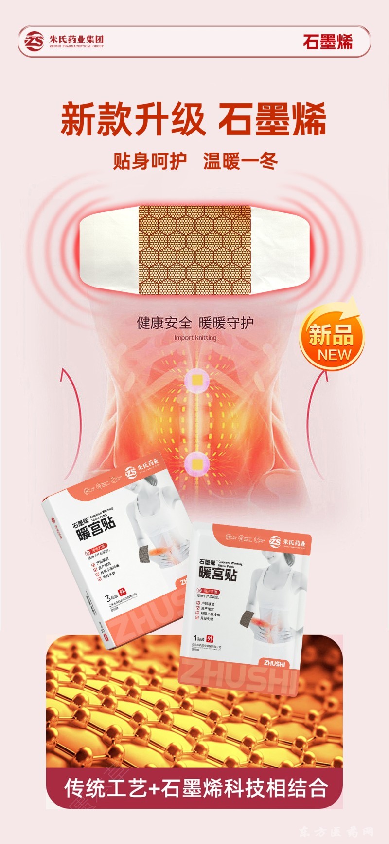 | 备注 | 以下情况严禁使用朱氏药业集团石墨烯暖宫贴: 皮肤存在破损、溃烂、开放性伤口,或有感觉障碍、急性闭合性损伤、化脓性感染的人群。 皮肤病患者(如湿疹、皮炎等发作期)、严重糖尿病患者、急性期炎症患者。 恶性肿瘤患者、活动性结核患者、精神类疾病患者、高热患者。 孕妇(尤其下腹部区域),避免对胎儿健康产生潜在影响。 对暖宫贴中任何成分(如石墨烯、草本萃取物等)过敏者。 |