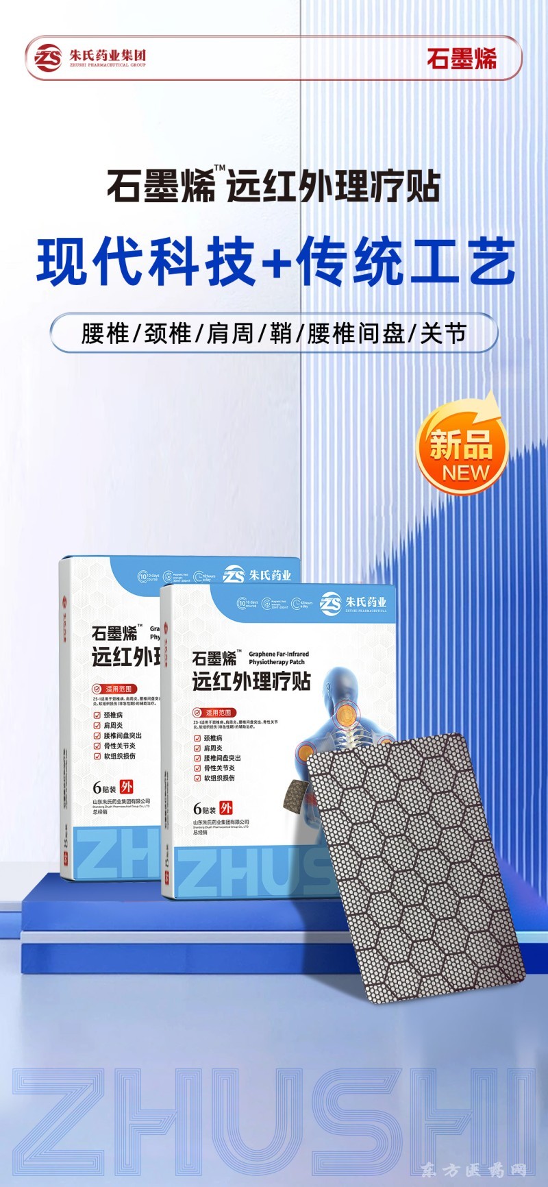 | 功能主治 | 石墨烯远红外理疗贴是朱氏药业集团推出的新品,采用石墨烯材质涂层结合远红外技术,将现代科技与传统理疗工艺相融合。通过远红外作用于人体患处,辅助缓解颈椎病、肩周炎、腰椎间盘突出、骨性关节炎、软组织损伤等引发的不适,实现 “一撕一贴,持续呵护” 的理疗效果。 |