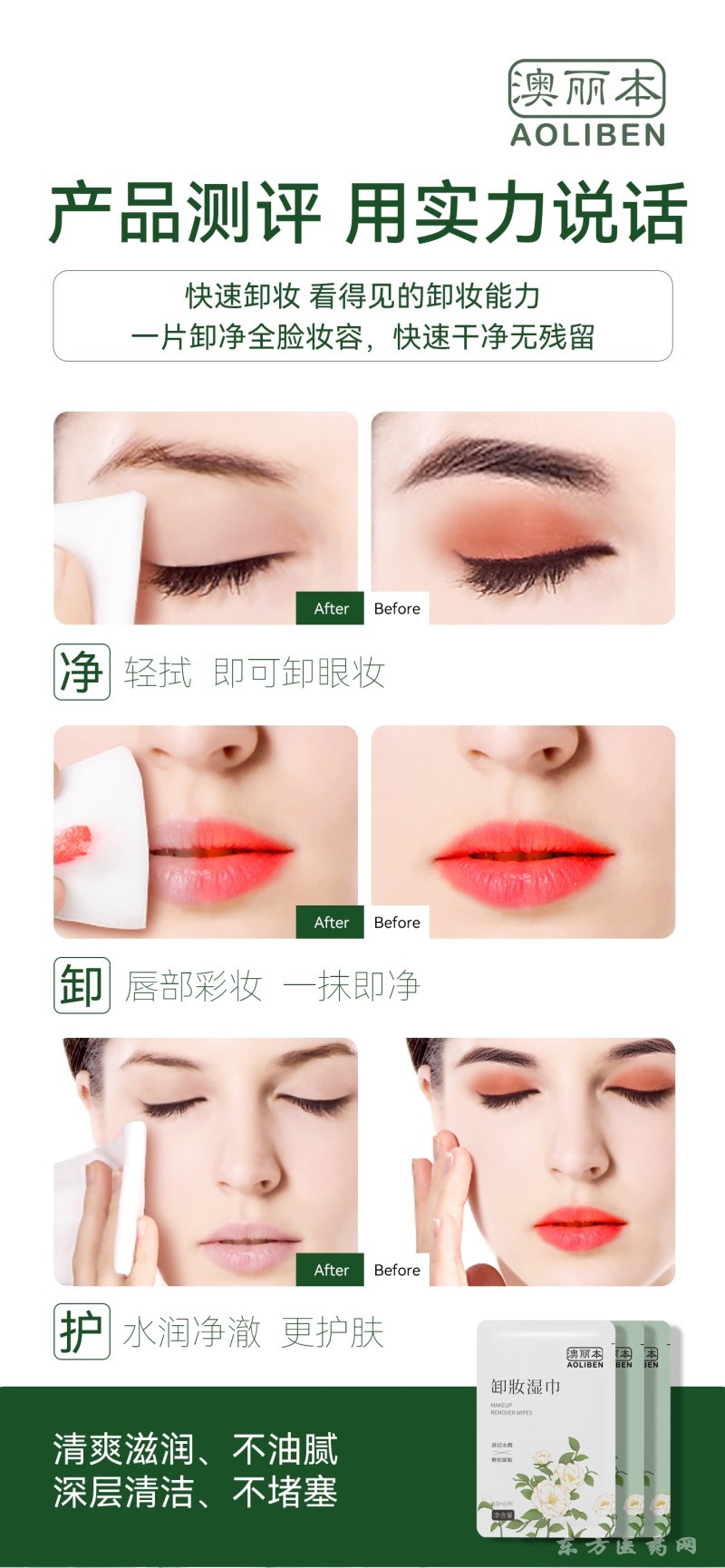 产品标签:澳丽本卸妆湿巾100片/箱 一次性清洁湿巾 免洗卸妆液浸透 美容院同款