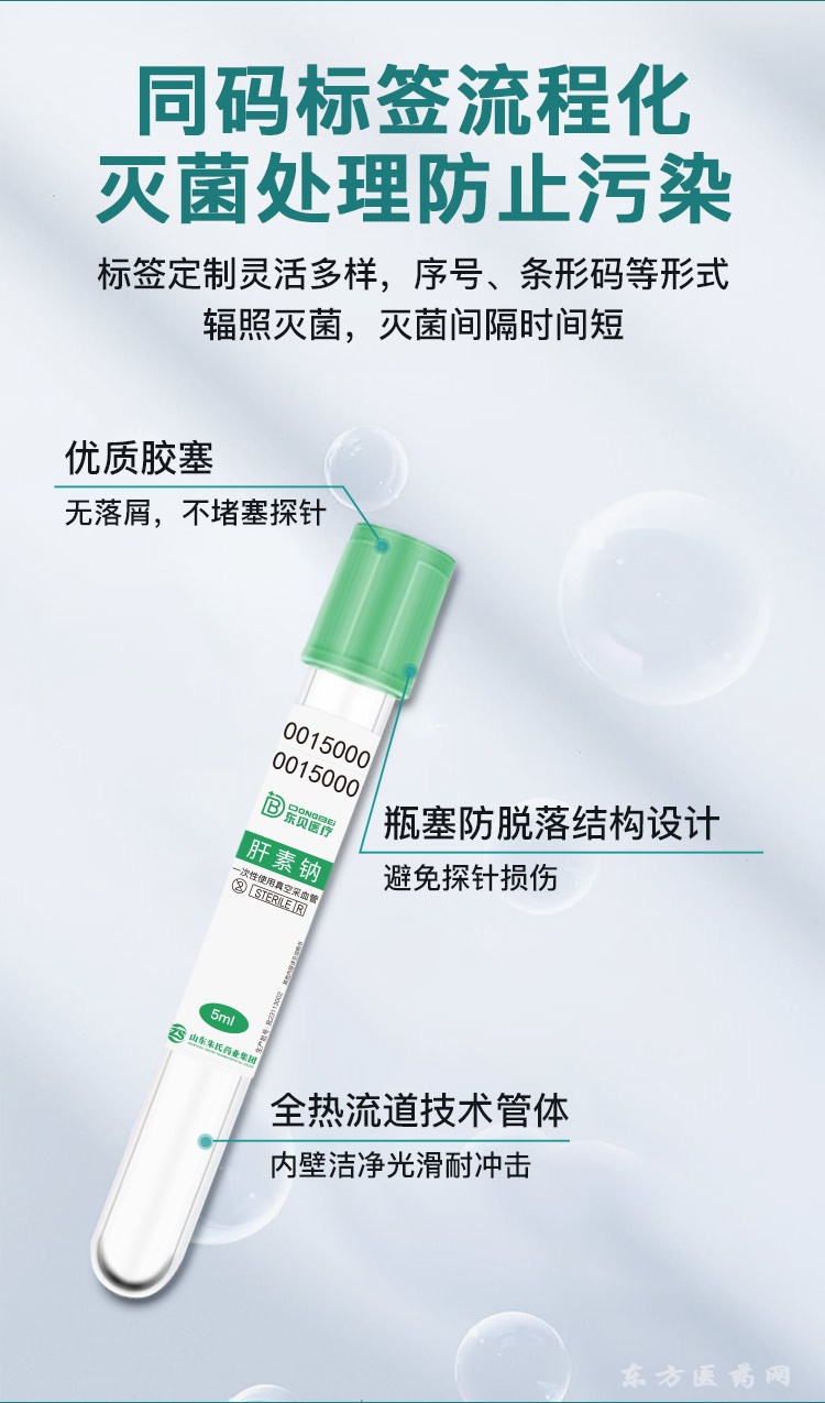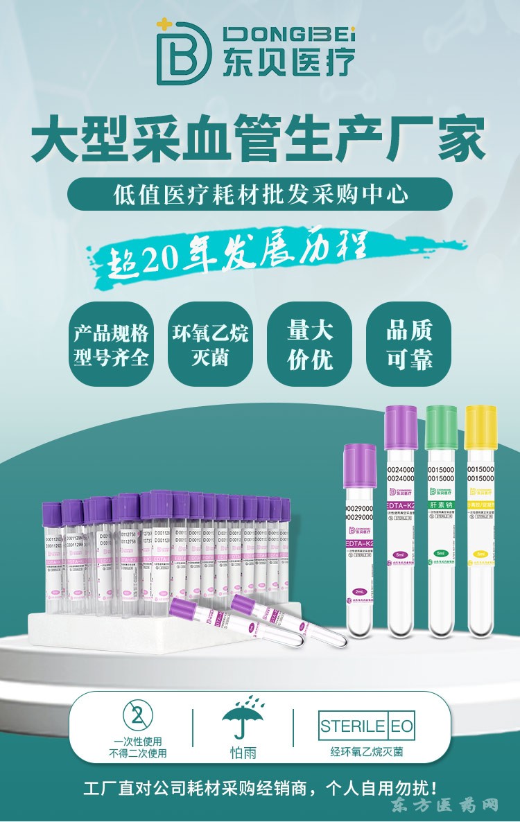 | 功能主治 | 东贝医疗是拥有超 20 年发展历程的大型采血管生产厂家,作为 21 年低值医用耗材制造商及源头实力工厂,专注于一次性使用真空采血管生产。产品资质齐全,通过国家三类医疗器械认证及药监备案国家认证,型号规格丰富且支持定制。采用同码标签流程化灭菌处理(辐照灭菌,间隔时间短),具备优质胶塞(无落屑、不堵探针)、瓶塞防脱落结构(避免探针损伤)、全热流道技术管体(内壁洁净光滑耐冲击)等优势,为医药公司、医院、诊所、电商等多渠道客户提供针对性服务 |